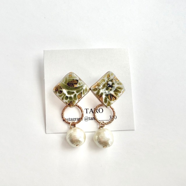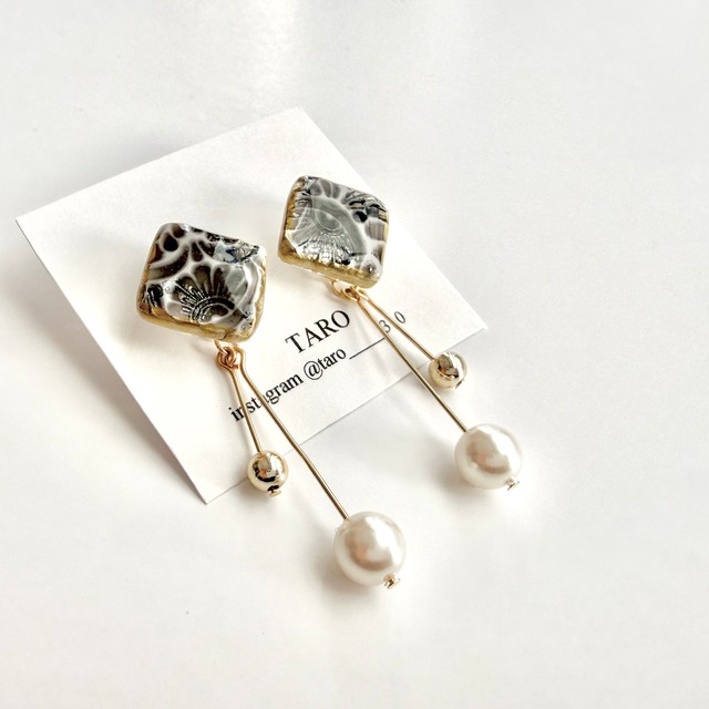 マルシェ等の対面販売でも人気のシリーズです! 粘土で出来ているため、本物のタイルと違って ・軽い ・割れにくい のが特徴のアクセサリーです。 中に閉じ込めた金箔、銀箔が光を透かして、 シンプルながらも華やかに使っていただけます。 2way仕様なので気分やコーディネートに合わせて 使い分けができるのも魅力。 特別な装いの日はもちろん、 日常にも馴染むアクセサリーです! 本体サイズ 約2㎝ 2wayパーツ 約4cm 揺れる2wayパーツはゴールド、シルバーが選択可能。 軽量設計で、マルシェ等の対面販売でも 『着けているのを忘れるくらい軽い』と言われることが多い商品です! ──────────────── 当店はほとんどが市販のパーツを使わず、 1点1点がハンドメイドの作品となります。 その特性上、画像と色の混ざり方、 重なり方の個体差がある場合がございます。 ご理解・ご了承の上、ご注文くださいますよう お願いいたします。 全てアレルギー対応で ピアスの金具はサージカルステンレスを 使用しております。 こちらの間違い、不備等以外での イメージ違いや注文間違い等の 返品、交換はお受けいたしかねますので、 あらかじめご了承ください。 気になる点がございましたら、 ご注文前にお気軽にご質問ください◎ ご注文から2週間ほどで発送いたします。